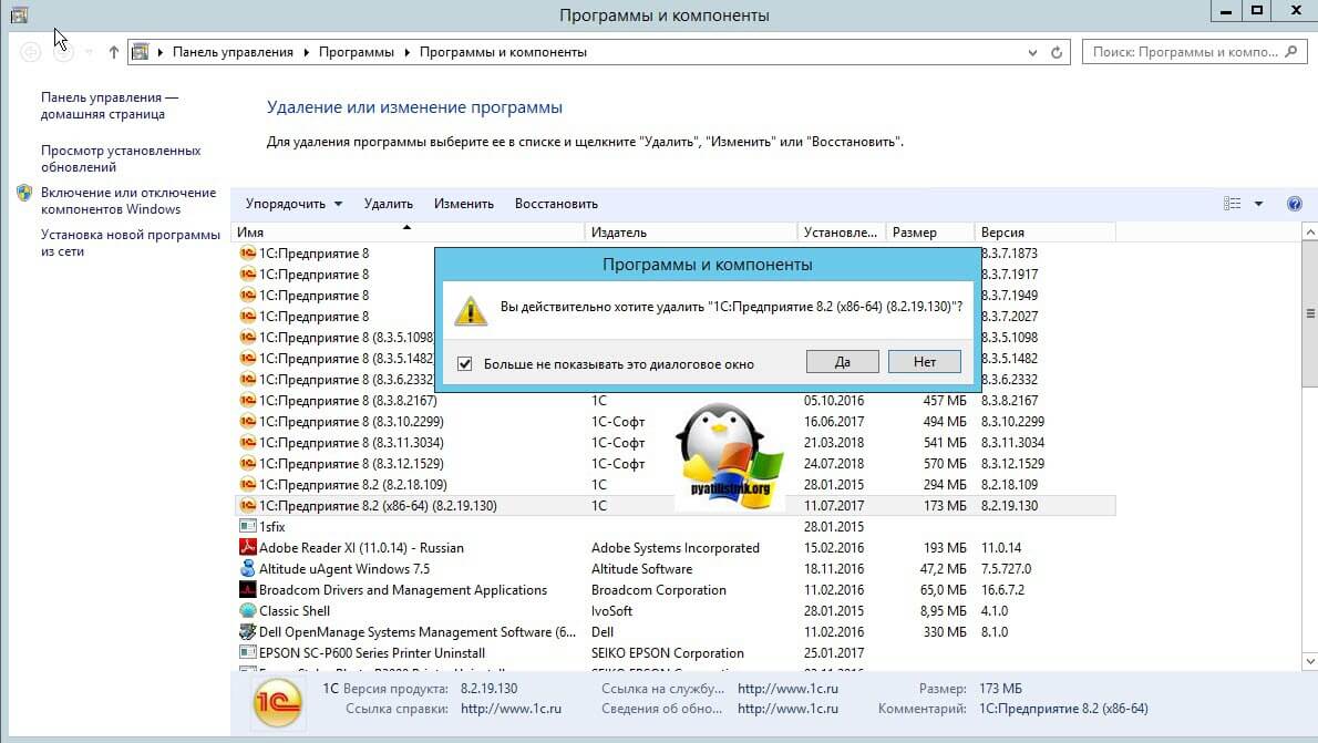 У меня была задача установить 32-х битную версию платформы 8.2.19.130, когда я увидел ошибку применения преобразований, я первым делом полез в оснастку «Программы и компоненты». Там я обнаружил, что уже установлена 64-х битная версия данной платформы и плюс старые, которые я не использую.