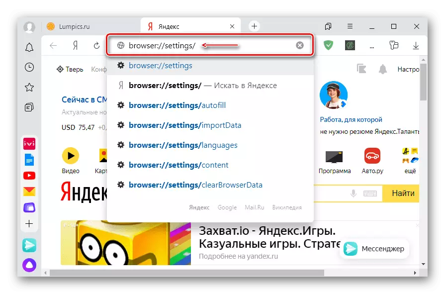 - Open Yandex.Browser for Android, enter the address: