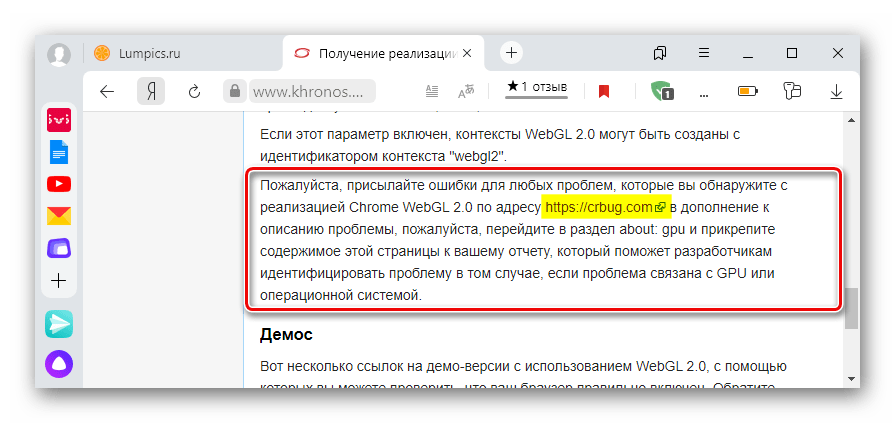 Также обо всех проблемах с запуском игр и сайтов компания Khronos предлагает писать им. К письму необходимо прикрепить скриншот ошибки, а также копию полного отчета о состоянии графических функций.