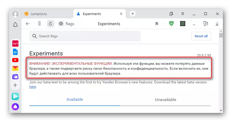 - Найти в «Experiments» вкладку «Available».