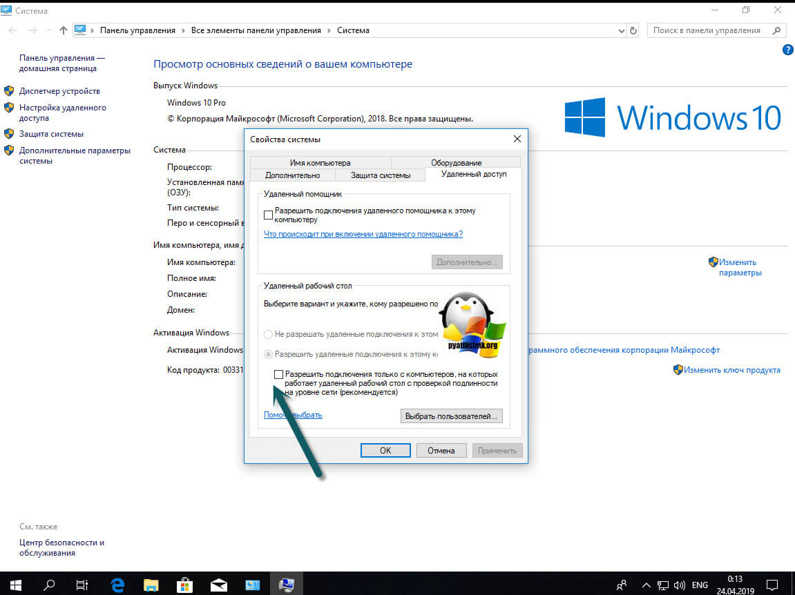 Данный метод выхода из ситуации я бы рассматривал, как быстрое, временное решение, до того, как вы установите обновления безопасности. Чтобы разрешить удаленное подключение к серверу и избегать ситуации, что произошла ошибка при проверке подлинности credssp, сделайте вот что. Откройте свойства моего компьютера, попав в систему, так же можно нажать одновременно WIN+Pause Breake или как вариант в командной строке ввести control /name Microsoft.System. В окне «Система» находим пункт меню «Настройка удаленного доступа»