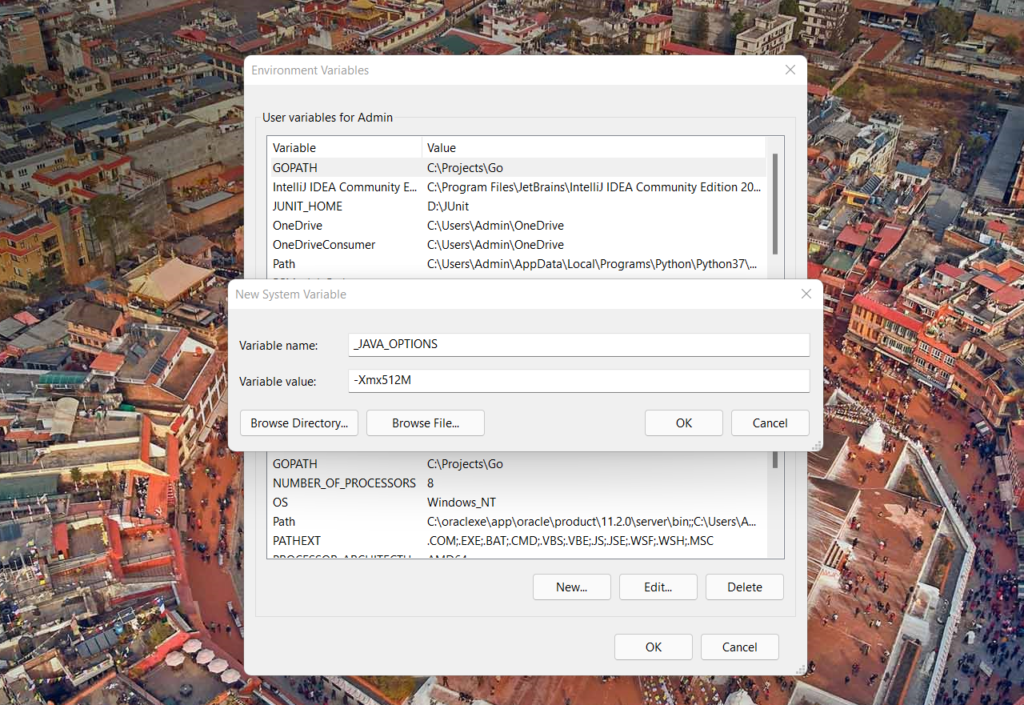 - Enter _JAVA_OPTIONS in the Variable name text box.