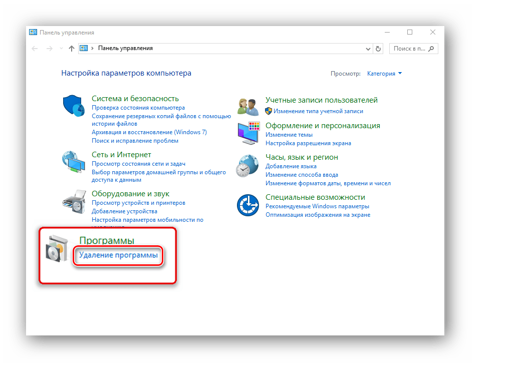 Ищем пункт «Программы» и нажимаем на «Удаление программ».