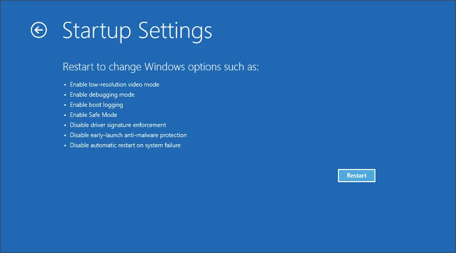 Необязательно: единственный параметр, который вы можете отключить, — это автоматический перезапуск, чтобы лучше видеть имя кода остановки.