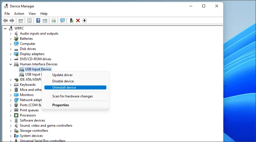 Найдите драйвер, который вызывает у вас проблемы, и щелкните его правой кнопкой мыши. Выберите Удалить устройство из меню.