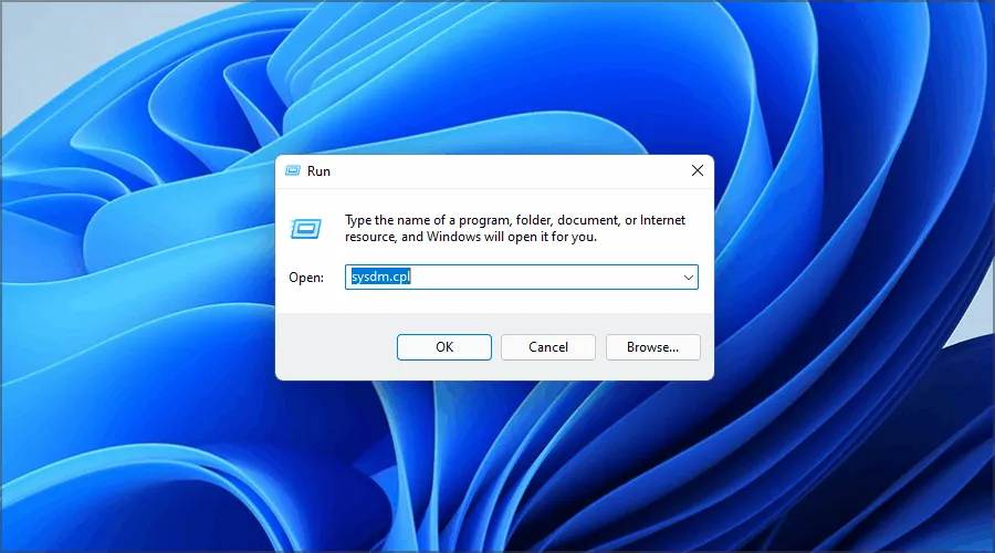 Нажмите Windows клавишу + R, введите sysdm.cpl и нажмите Enter.