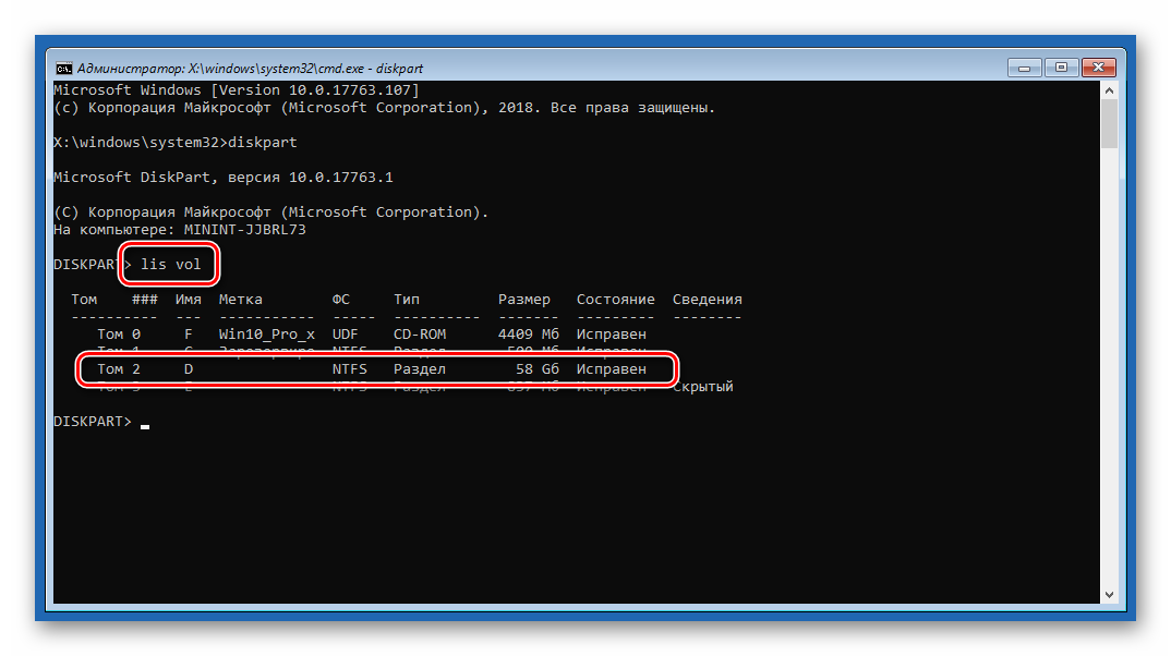 Ищем системный диск. Поскольку утилита чаще всего меняет букву тома, определить нужный можно только по размеру. В нашем примере это «D:».