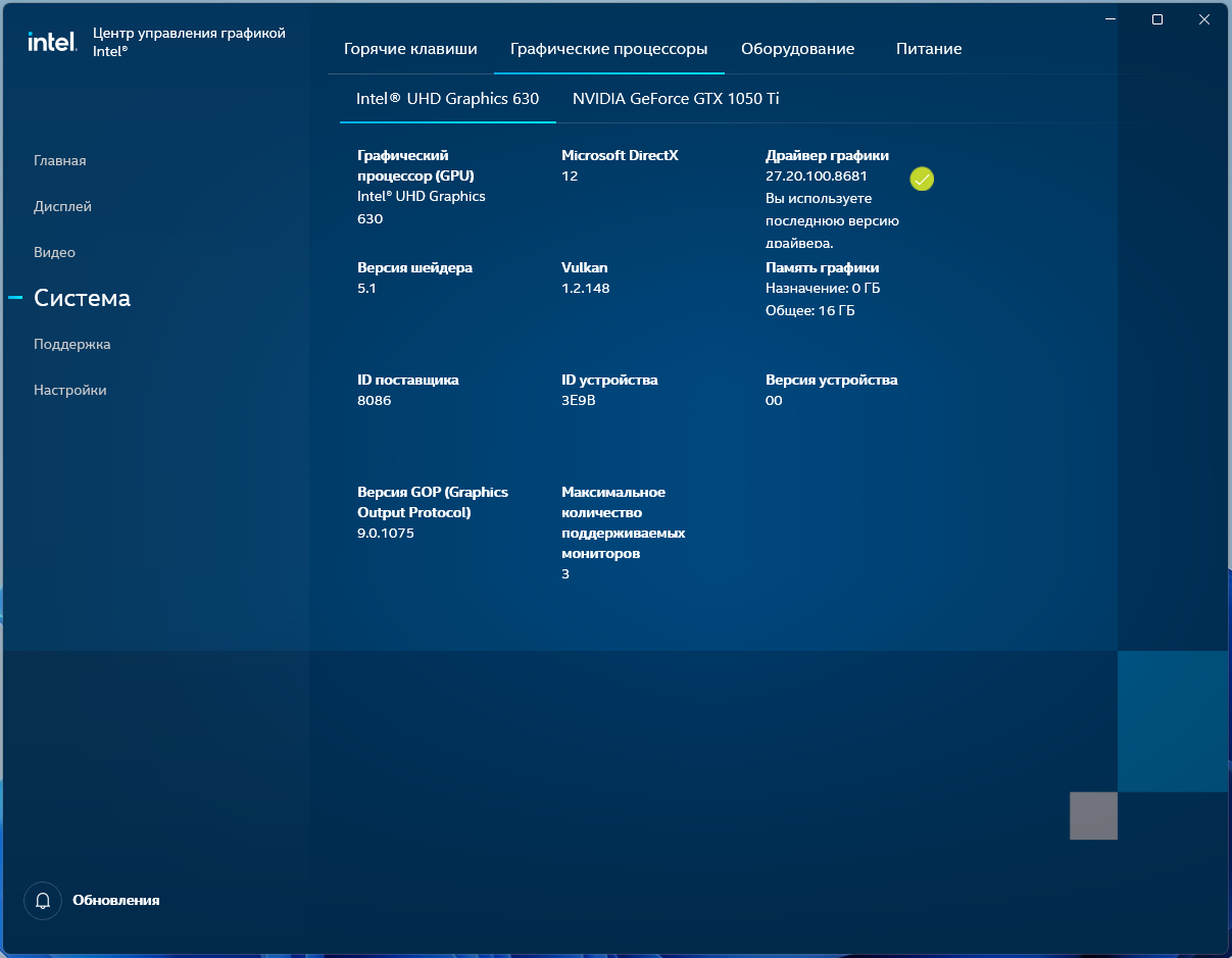 Я обновил данный драйвер в своей системе, как можно убедиться, версия драйвера стала 30.0.101.1191: