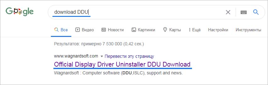 Утилита Display Drivers Uninstaller (DDU) способна удалить все неисправные драйверы, а также оставшиеся их файлы. После загрузим и установим последнюю версию программного обеспечения из сайта NVIDIA.