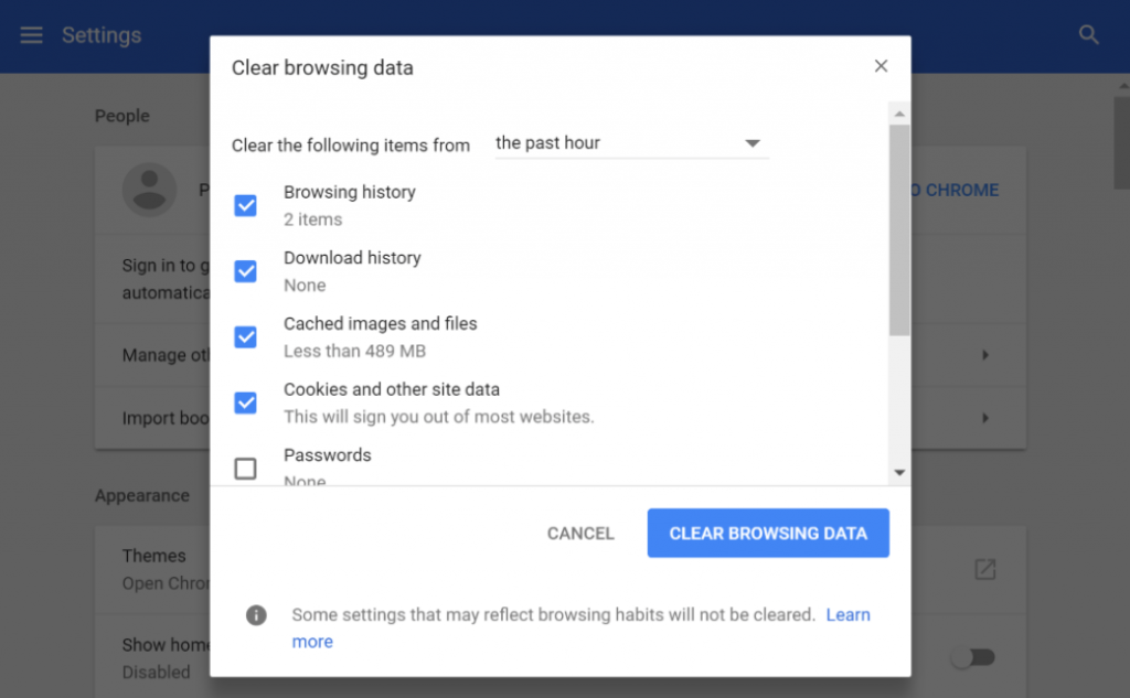 Clearing the cache won’t affect your browsing experience much, but some websites may take a couple of extra seconds to load as they re-download all the previously cached data. Clearing cookies means you’ll have to sign in again to most websites.