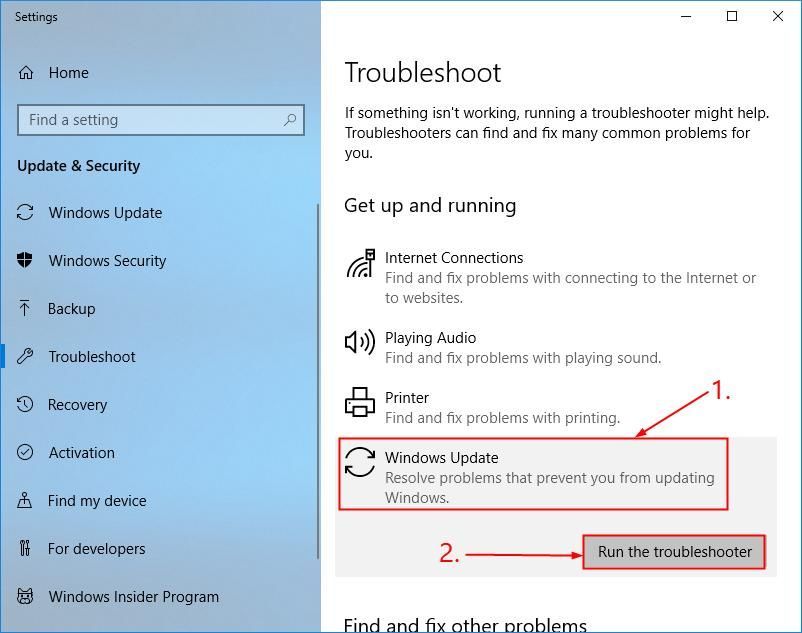 2) Нажмите Центр обновления Windows > Запустите средство устранения неполадок .
