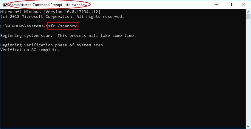 2)В окне командной строки введите sfc / scannow и нажмите Войти .