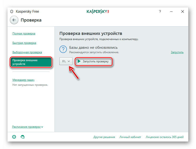 Бесплатная версия этого антивируса поможет быстро просканировать любой носитель. Инструкция по его использованию для выполнения нашей задачи выглядит следующим образом: