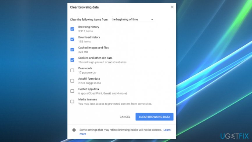 The names of the options are more or less similar on other websites. The option names may slightly differ, but you’ll easily find them on Firefox, Edge or IE with . Thus, make sure to delete browsing data on the affected one. After that, reset your web browser’s default settings.