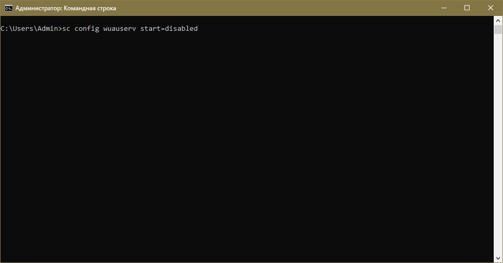 - sc config wuauserv start=disabled – команда для временного отключения обновления системы.