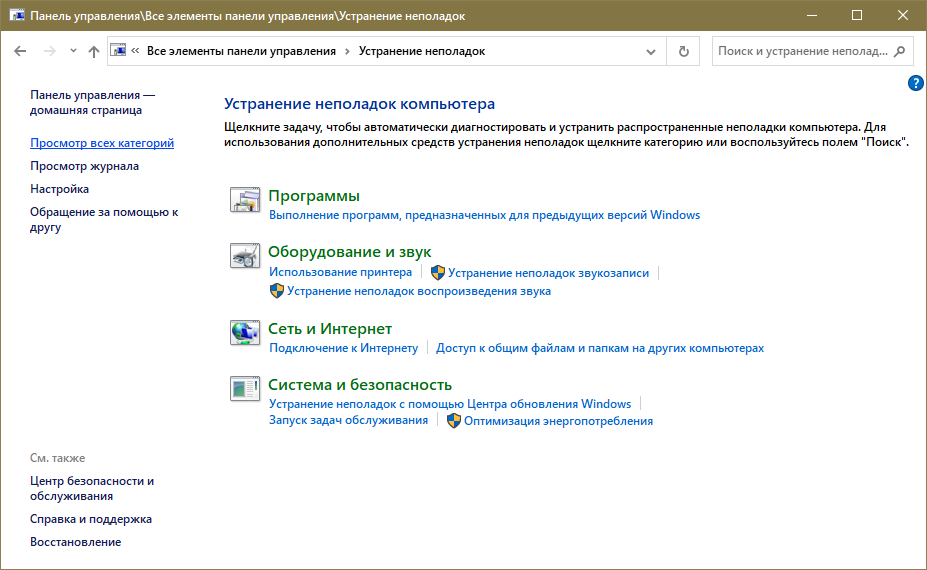 Все знают про программу «Устранение неполадок». Если вы можете войти в систему, то все очень просто: