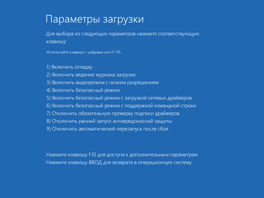 Появится новое меню. Выбираем «Поиск и исправление неисправностей». Далее «Дополнительные параметры», «Параметры загрузки» и кликаем «Перезагрузить». При появлении чёрного экрана жмём «F4», чтобы попасть в безопасный режим.