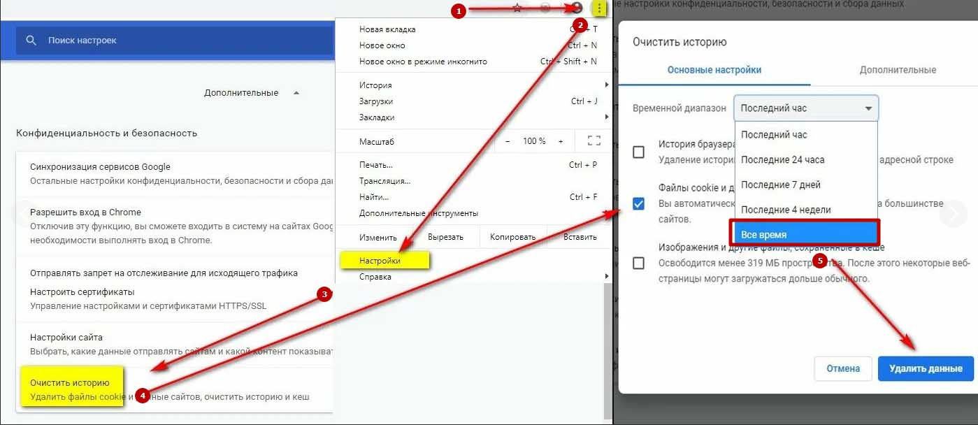 Если в веб-браузере используются устаревшие cookie, сбой может наблюдаться и после устранения ошибки на сервере. Нужно сделать очистку истории браузера (включая cash и cookie) либо повторить попытку в другом браузере. Алгоритм очистки cookie отличается в разных браузерах. Например, в Гугл Хром она выполняется следующим образом:
