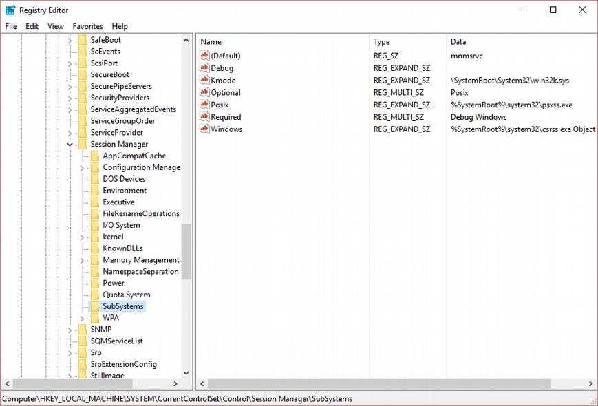 “HKEY_LOCAL_MACHINE\SYSTEM\CurrentControlSet\Control\Session Manager\SubSystems”