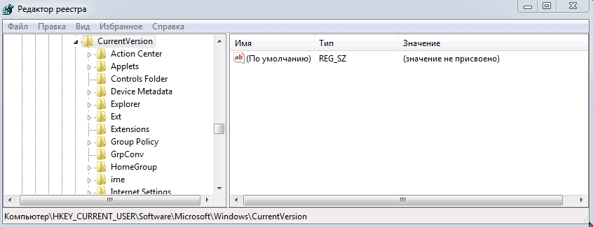 Перейти в папку CurrentVersion, расположенную по следующему адресу: HKEY_CURRENT_USER/ Software/ Microsoft/ Windows;