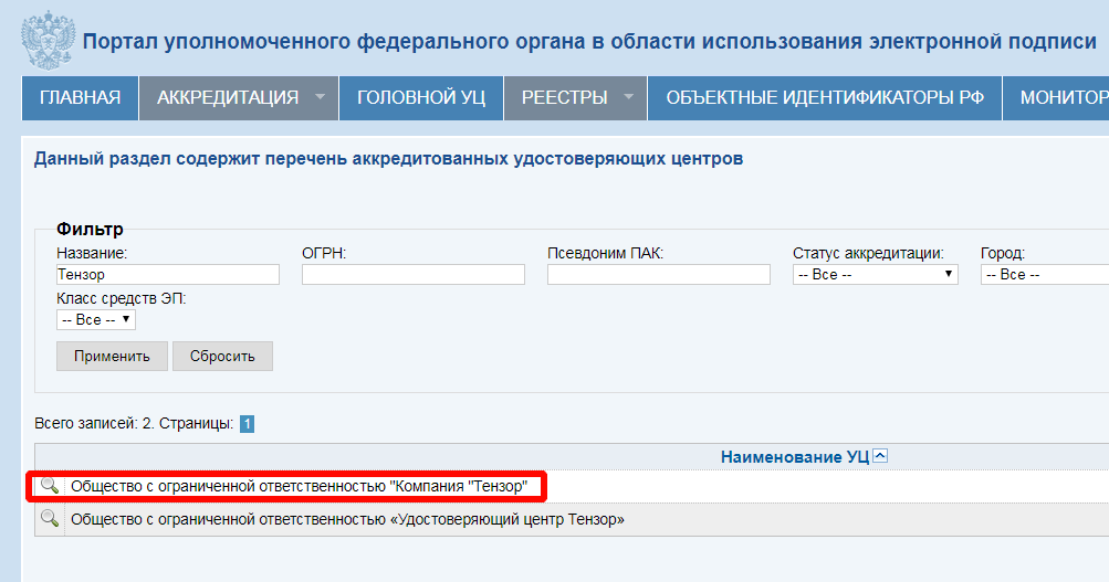 указан «Минкомсвязь России», а промежуточного удостоверяющего центра