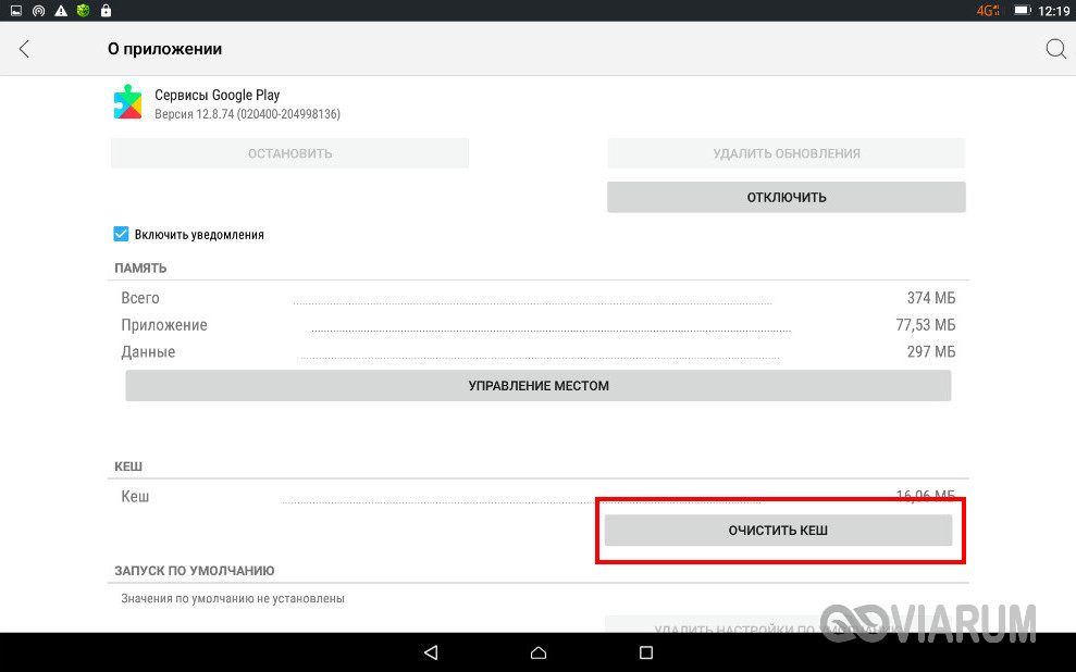 Очищаем кэш данных приложений Google поочередно