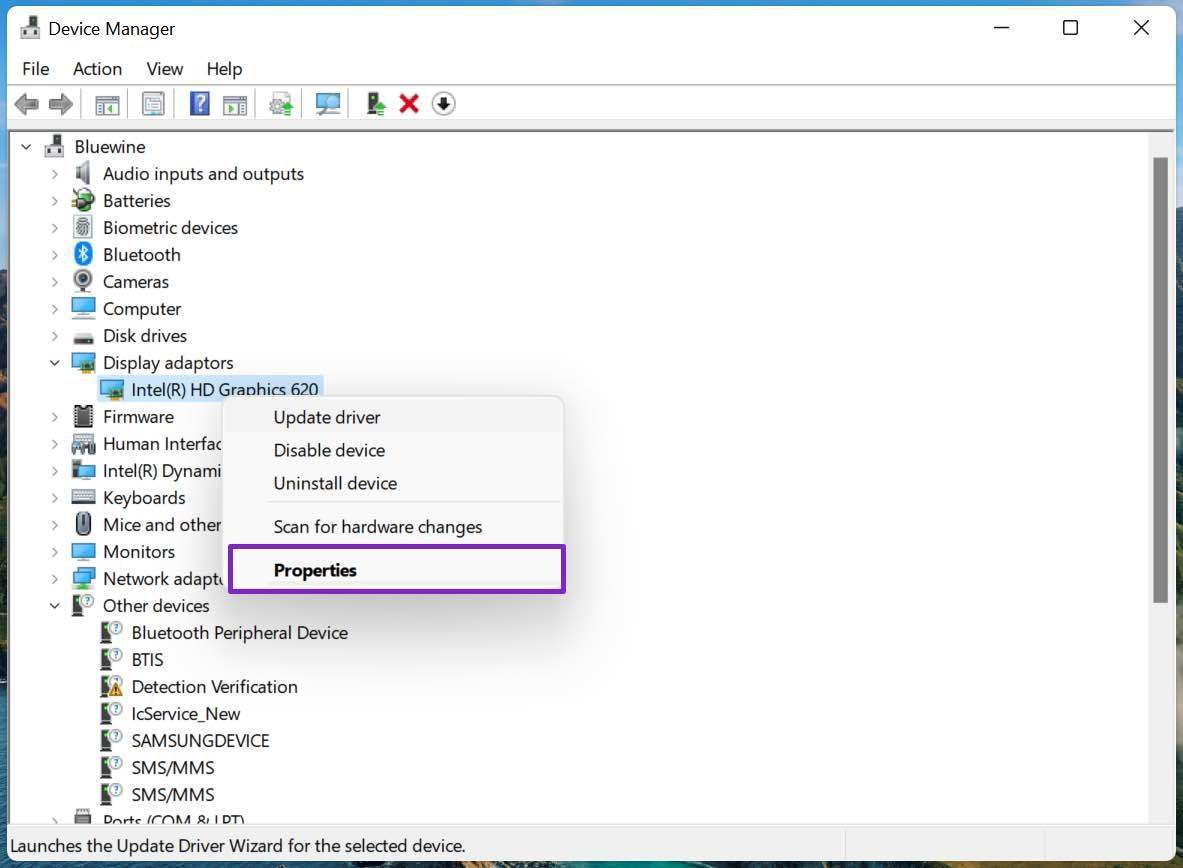Шаг 3: Щелкните правой кнопкой мыши поврежденный драйвер устройства и выберите «Свойства».