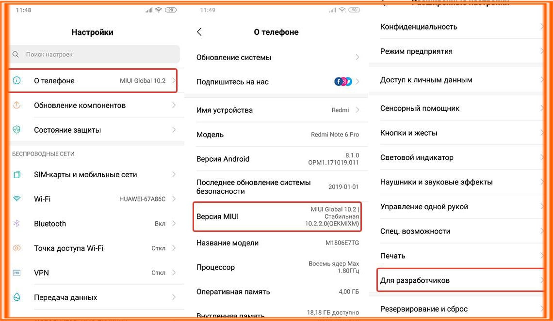Как получить права разработчика в устройствах от Xiaomi? Если данный режим у Вас все еще не активирован, то идем по пути: «Настройки» => «О телефоне» и жмем раз 7-10 на «Версия MIUI», до появления уведомления, что Вы теперь разработчик.