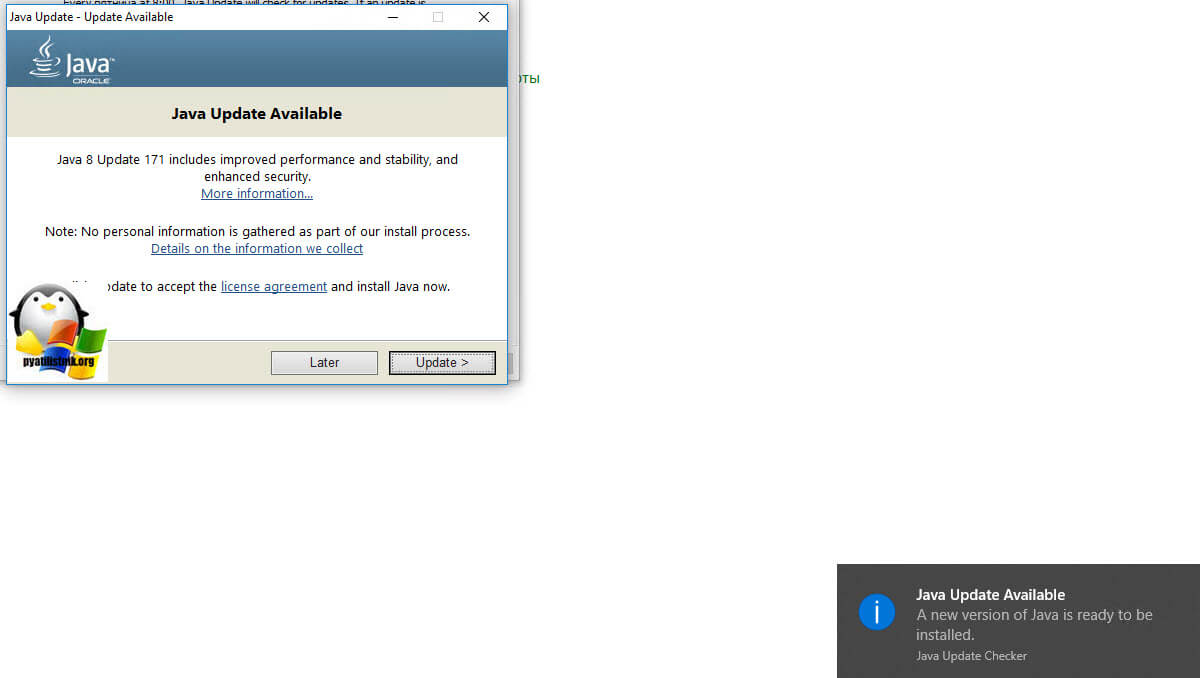После чего окно закрывается и все по кругу, это не была бы JAVA, если бы с ней было все гладко.