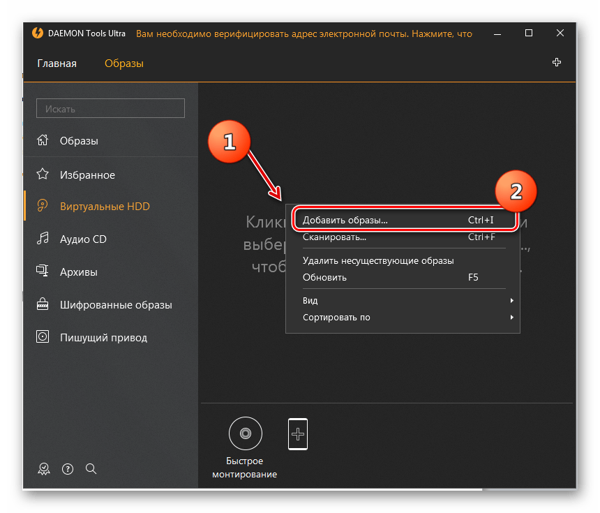 Часто в уже установленной программе отсутствует возможность использования виртуального привода. При этом программа выдаёт сообщение вида «Ошибка. Виртуальный привод не найден».