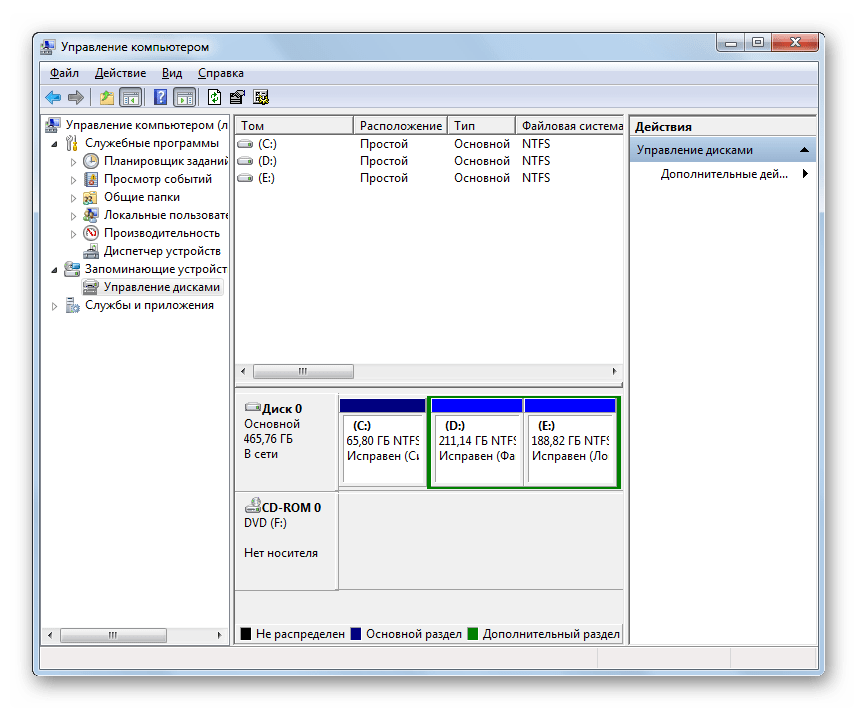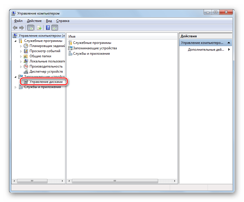 Виртуальный носитель можно удалить также без использования стороннего ПО, применив только «родную» оснастку Виндовс 7 под названием «Управление дисками».