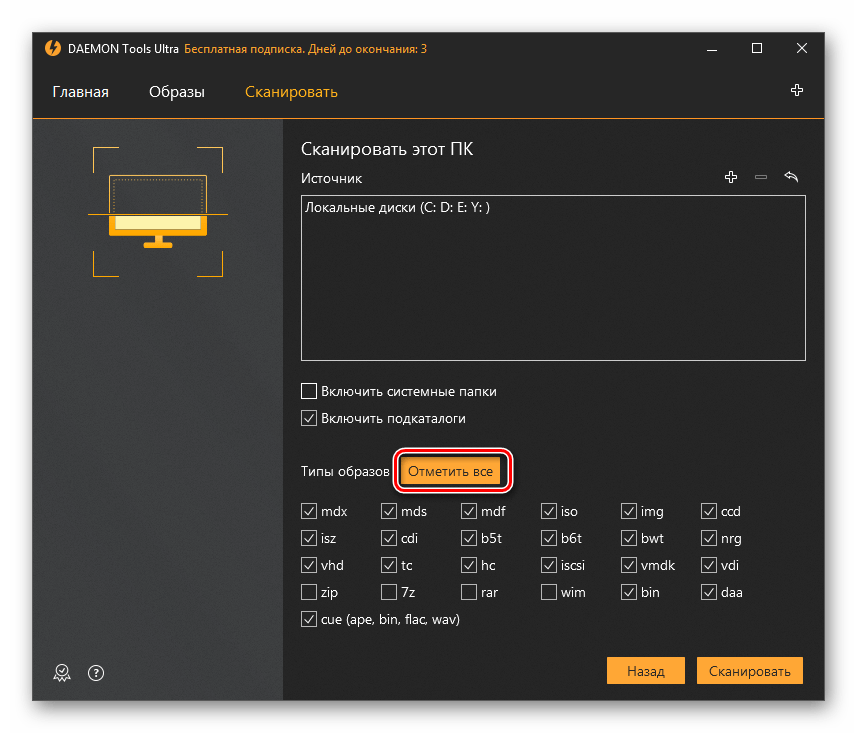 В блоке «Типы образов» нового окна щелкните «Отметить все».
