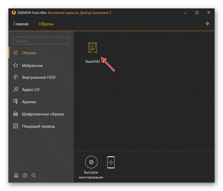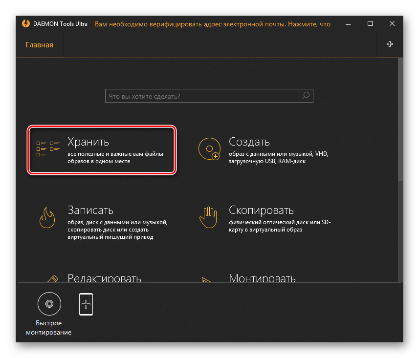 - Запустите DAEMON Tools и щелкните в главном окне по пункту «Хранить».