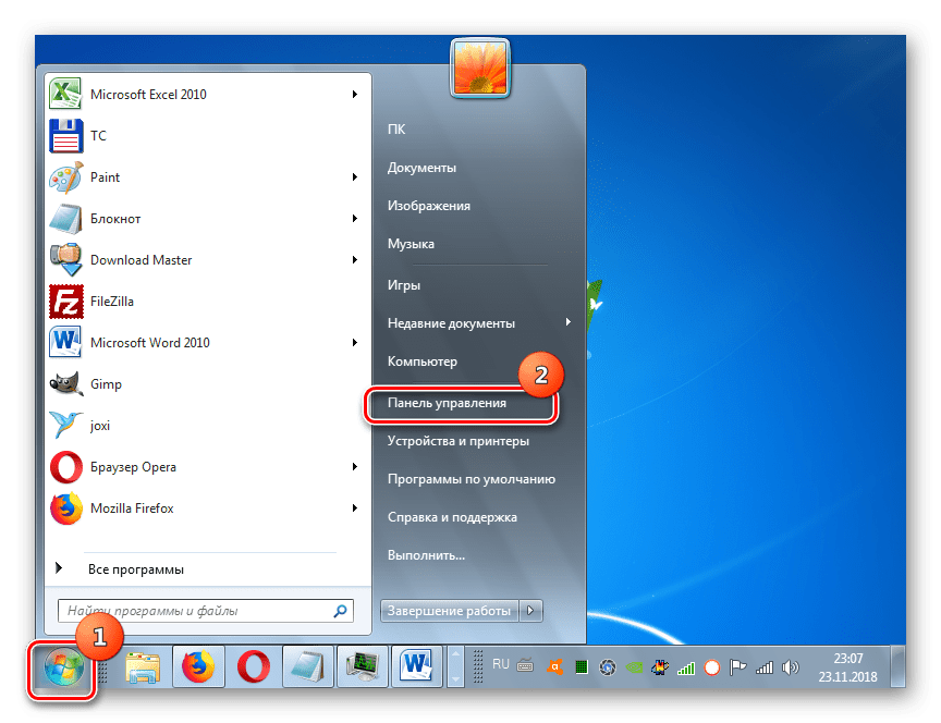 - Кликните «Пуск» и переместитесь в «Панель управления».