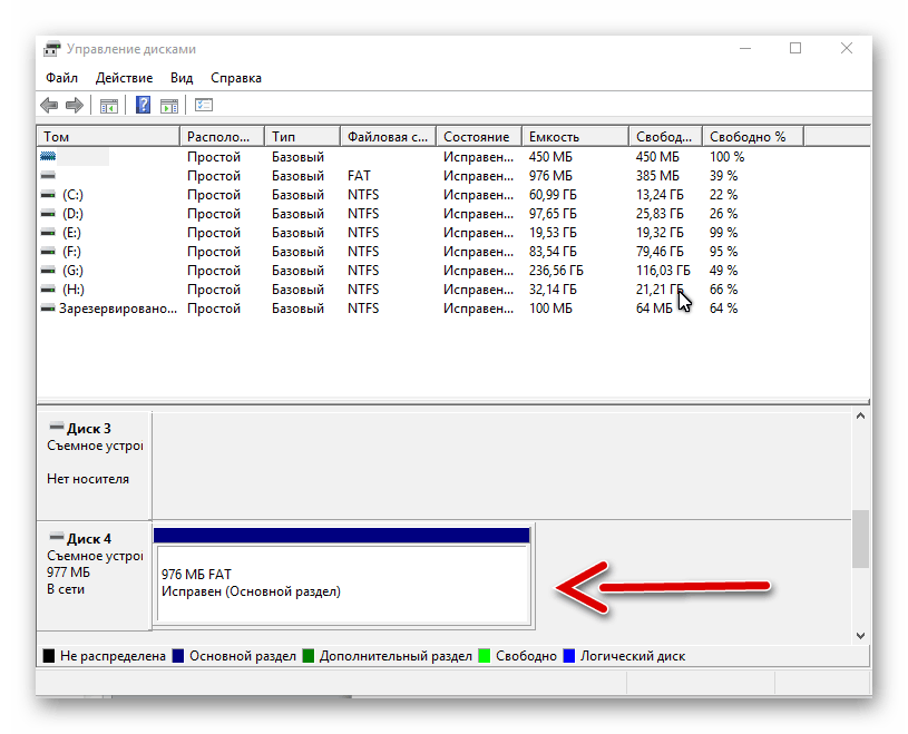 В Windows 10 достаточно кликнуть правой кнопкой мыши на кнопке «Пуск» и выбрать пункт «Управление дисками».</li>Меняем букву, перезагружаемся — флешка должна благополучно обнаружиться.</li></ol>