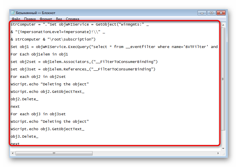 Одна из официальных рекомендаций от Microsoft — использование универсального скрипта VBS, который удаляет файлы, влияющие на появление ошибки с кодом 0x80041003. Его не нужно прописывать вручную, поскольку скрипт уже готов. Вам остается только создать файл с ним для дальнейшего запуска.