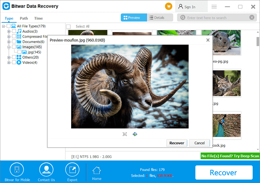 Лучшее программное обеспечение для работы — этоВосстановление данных BitwarПрограммное обеспечение. Он обеспечивает эффективное сканирование, позволяя пользователям восстанавливать все типы файлов с любых внешних или внутренних запоминающих устройств, включая SD-карту, флэш-карту, внешний жесткий диск, карту памяти и другие.
