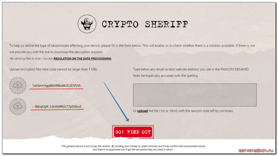 Затем загружаете пару зашифрованных файлов и нажимаете Go! Find out: