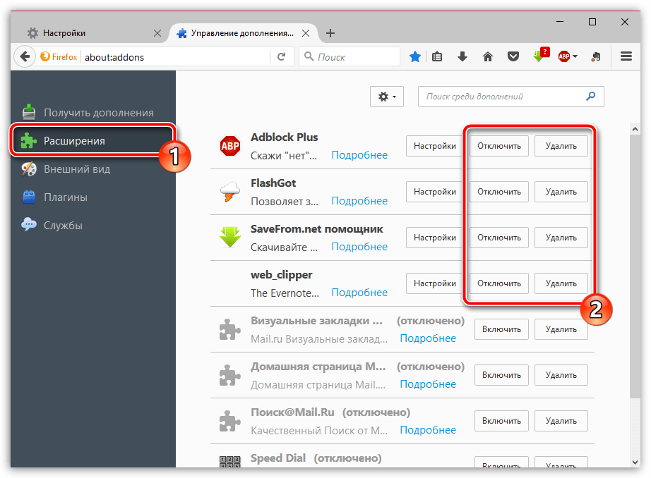 Падают вкладки в Mozilla Firefox
