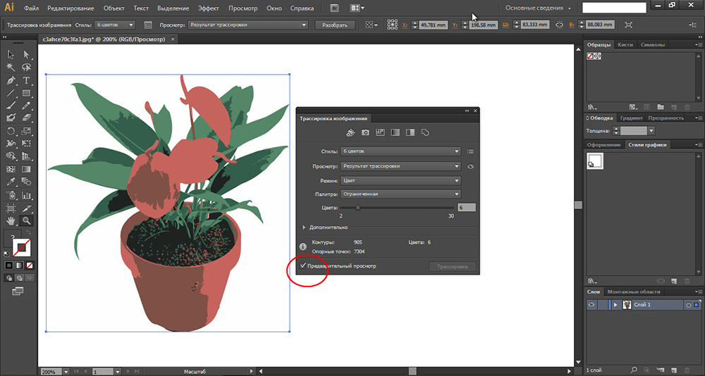Для более комфортной и быстрой работы в панели инструментов советуем установить галочку «Предварительный просмотр», в этом случае трассировка будет выполняться сразу после изменения любого из параметров. Готово изображение можно сохранить в любом совместимом векторном формате. В Adobe Illustrator изображение можно экспортировать в родной формат AI, а также EPS, AIT, SVG (SVGZ), FXG и, конечно же, в PDF.