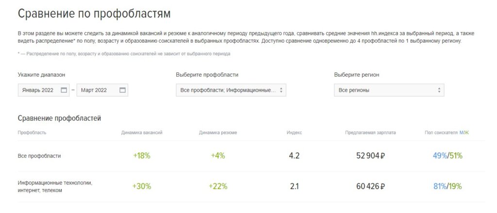 С января по март 2022 года вакансии в сфере «Информационные технологии, интернет, телеком» на 30% по сравнению с прошлым годом, при этом средняя предлагаемая зарплата — 60 426 рублей.