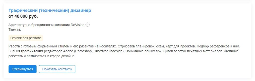 В Москве для графического дизайнера больше вакансий, чем в других городах, но в ряде вакансий предусмотрена возможность работать удаленно.