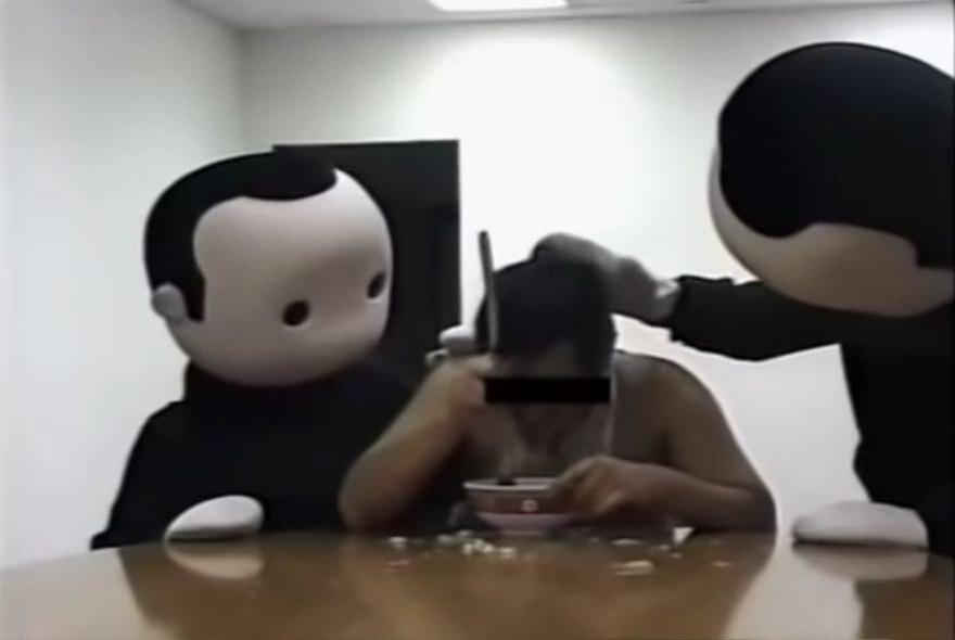 Краткая история: в 2006 году Рэймонд Перси, художник-мультипликатор, работавший над “Зверополис” и “Холодное сердце”, получил по сети от анонима видео, которое загрузил в сеть. На нем мужчина в фартуке на голое тело что-то ест половником из миски. К нему подходит ростовая кукла (персонажа созданного Рэймондом Перси) и начинает гладить его по плечам и голове, как бы жалея. Мужчина продолжает есть очевидно через силу. Появляется вторая кукла и у мужчины начинается практически истерика.