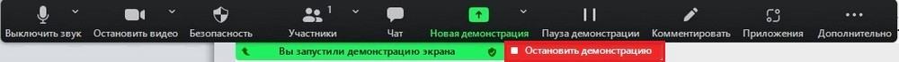 Чтобы включить демонстрацию экрана, надо нажать на одноименную кнопку в панели управления.