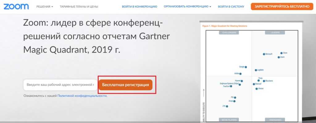 Заходим на сайт Zoom, нажимаем на кнопку «Зарегистрируйтесь бесплатно» или «Бесплатная регистрация».