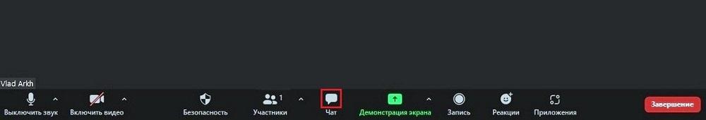 Чтобы завершить конференцию, надо просто кликнуть по красной кнопке Завершить, которая располагается справа внизу на экране.