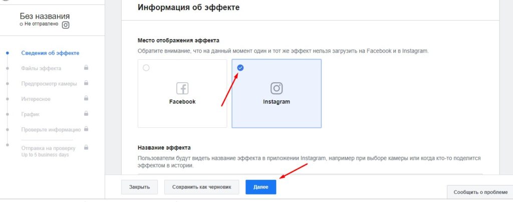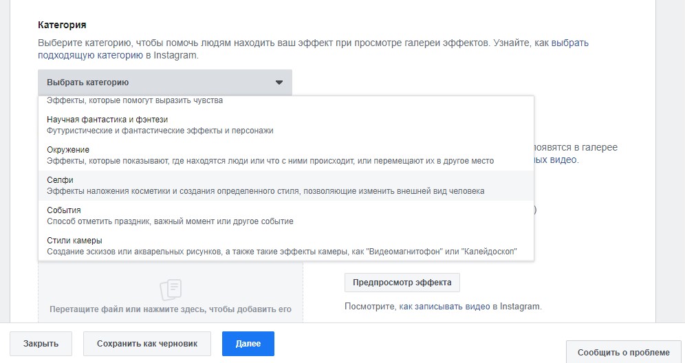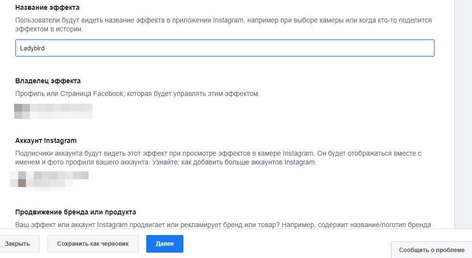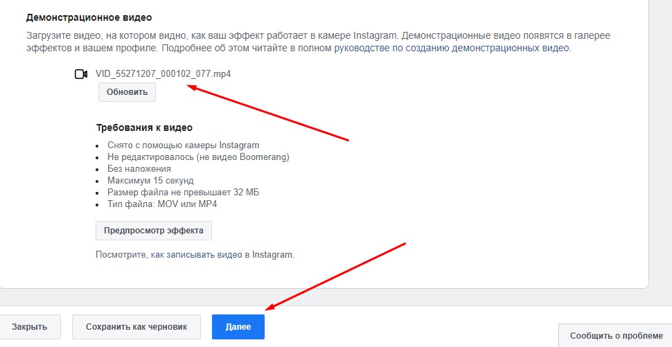 А также загрузить демонстрационный ролик вашей маски, снятый на камеру Instagram.