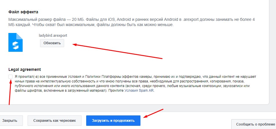 Обратите внимание, что файл не должен превышать 20 мб. Чем меньше весит эффект, тем быстрее и лучше он подгружается на различных устройствах