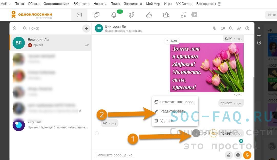 Если вы в переписке сделали ошибку или написали неправильную информацию, то без труда можете откорректировать сообщение, только если после отправки прошло не более 60 минут. Иначе редактирование станет недоступным.