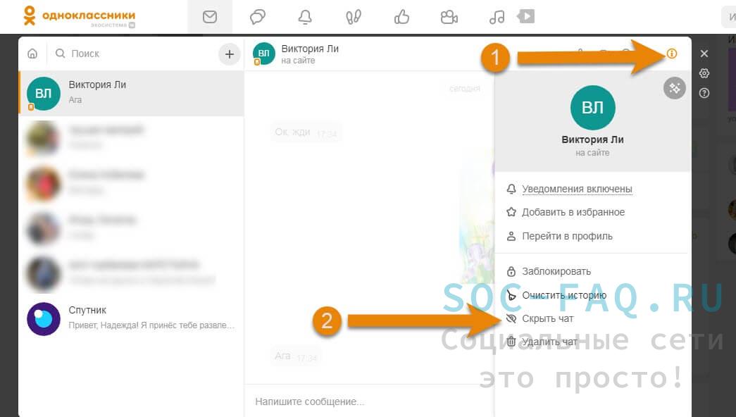 Далее соглашайтесь, нажимая кнопку «Скрыть». Переписка скрыта, ровно до того момента, пока собеседник вам не напишет.